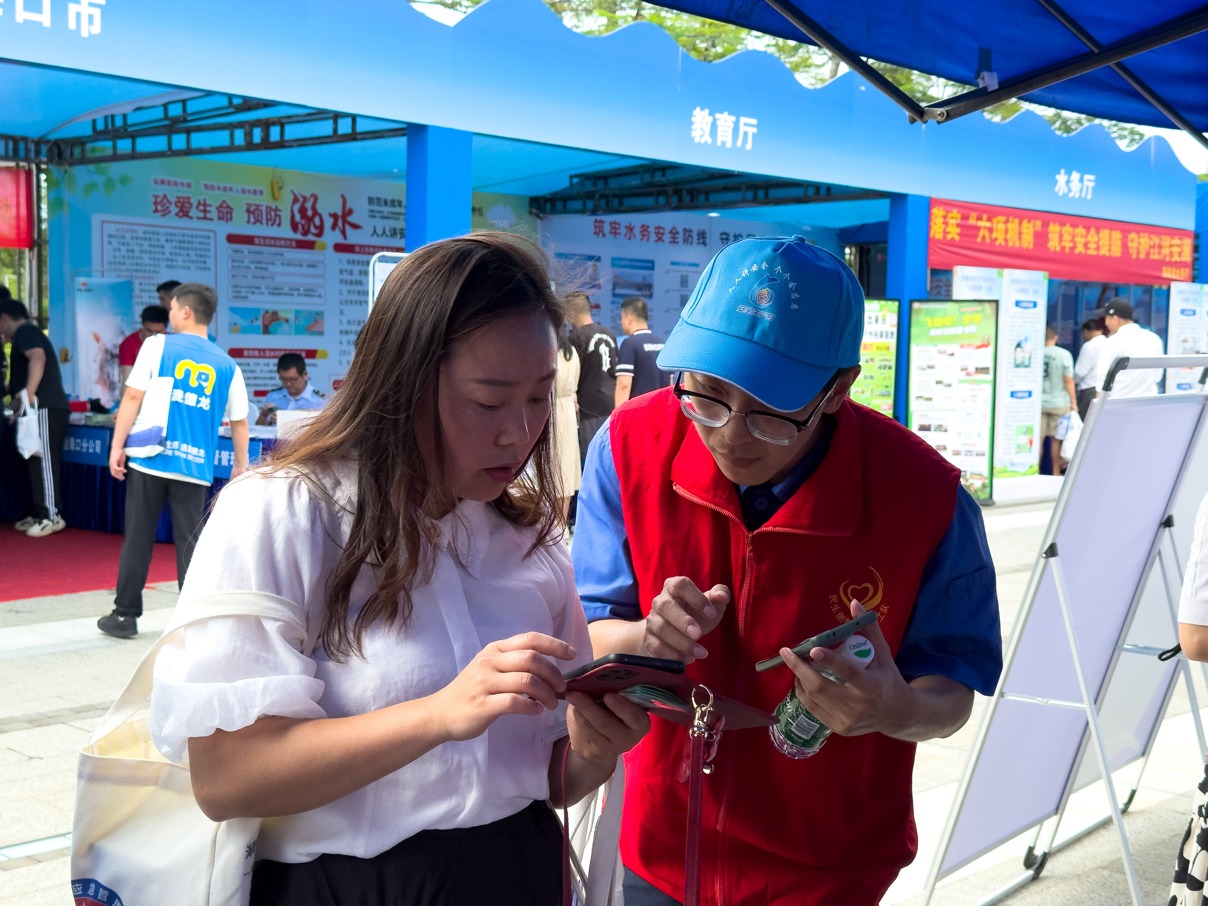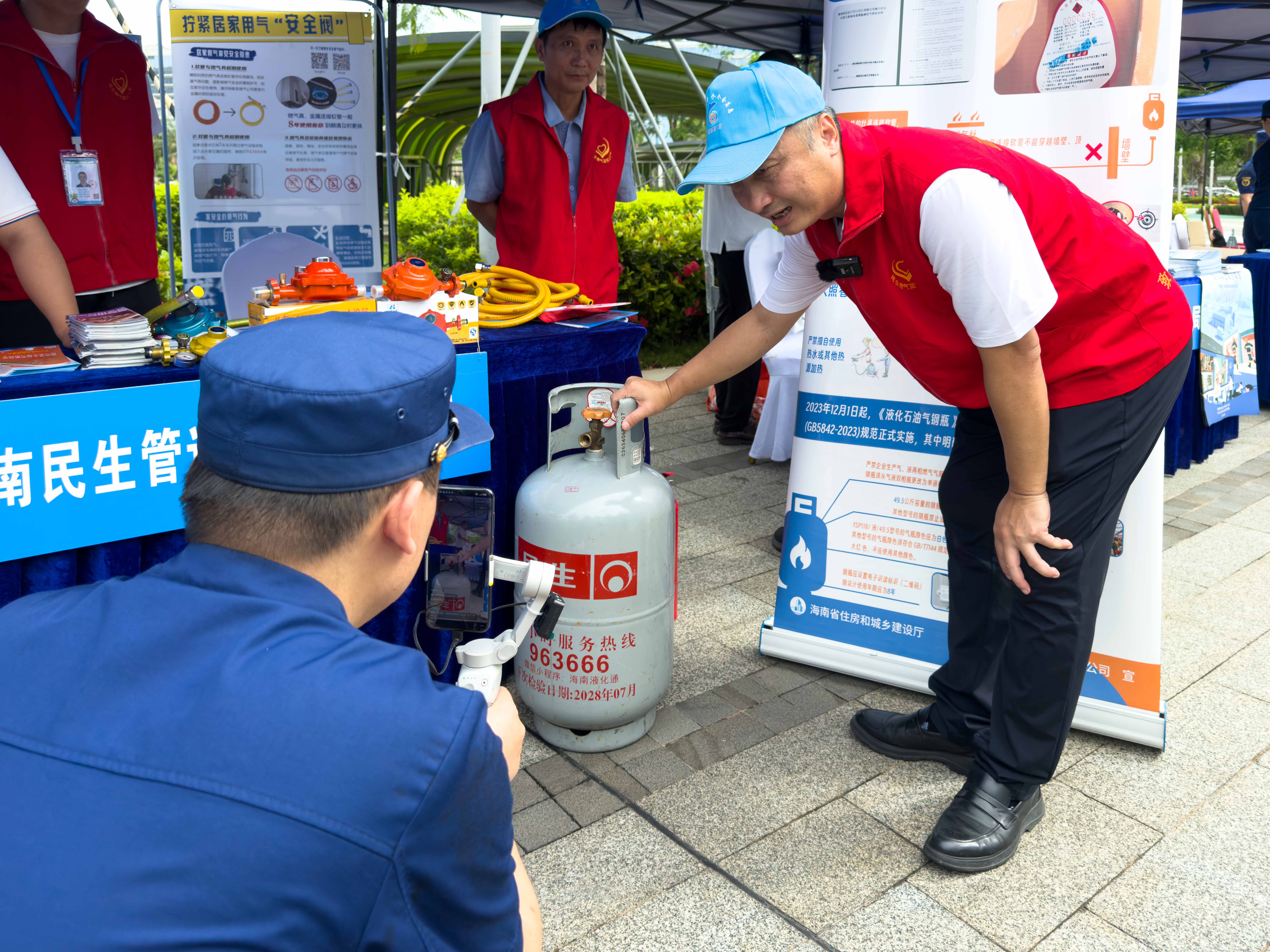 6月16日,2025年海南省“安全生產(chǎn)月”宣傳咨詢?nèi)蒸甙踩幕文耆A活動在海口舉行。海南民生燃?xì)馑{(lán)焰義工隊志愿者通過線上直播+線下咨詢方式,向公眾普及安全用氣規(guī)范。