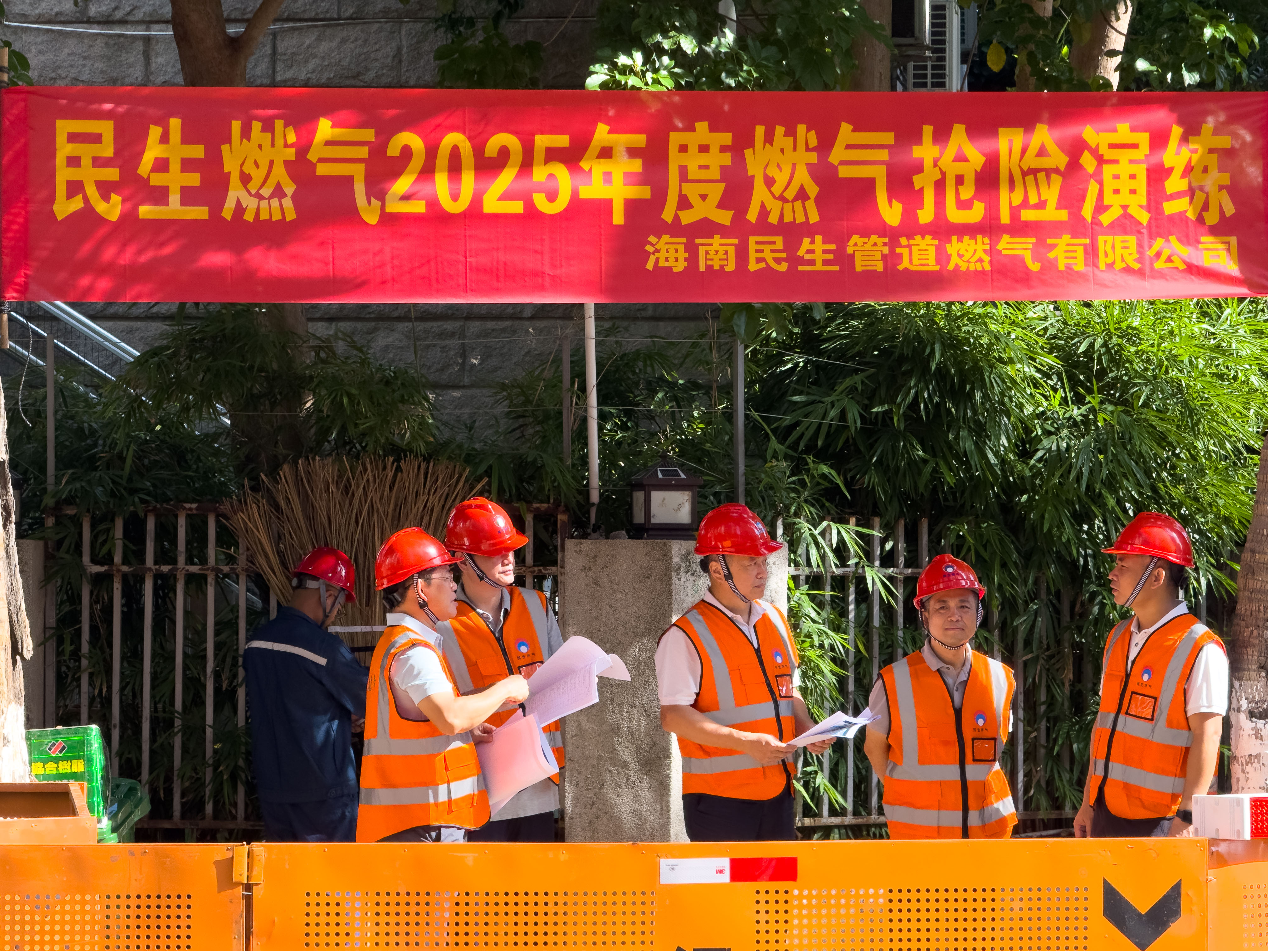 為檢驗并提高突發事故應急處置能力,7月9日上午,海南民生燃氣在??谑泻5閸u三東路與和平大道交叉口一施工工地開展燃氣管網事故應急搶險演練。公司總裁王奮、副總裁毛建中、符德任、楊紅日、林少海等領導現場觀摩指導,安技部、客戶管理部等相關人員參與本次演練。